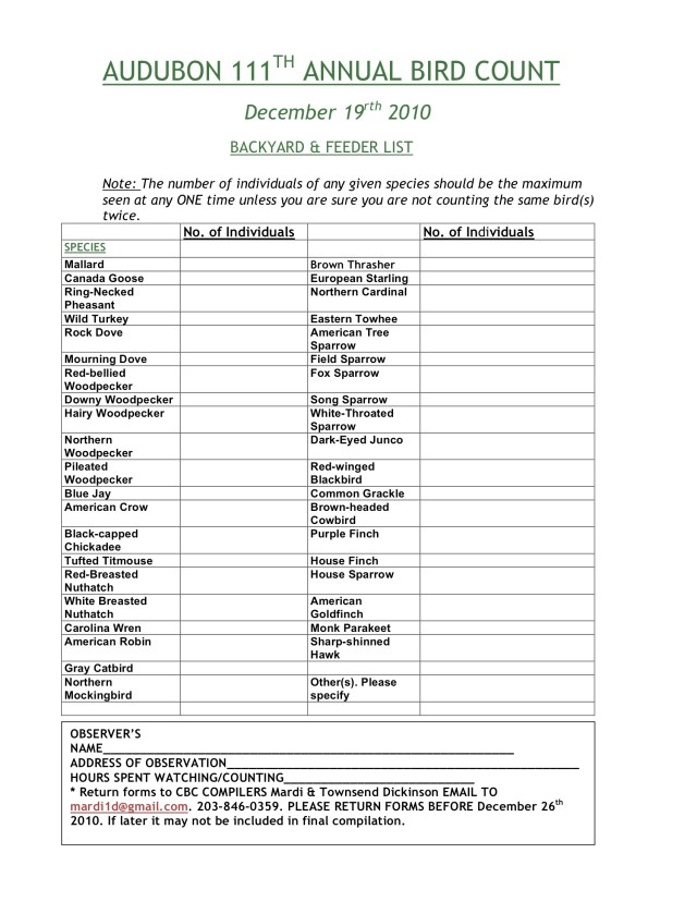 I will send you a PDF copy. This Feeder Form applies only to the Westport CBC Count Circle.