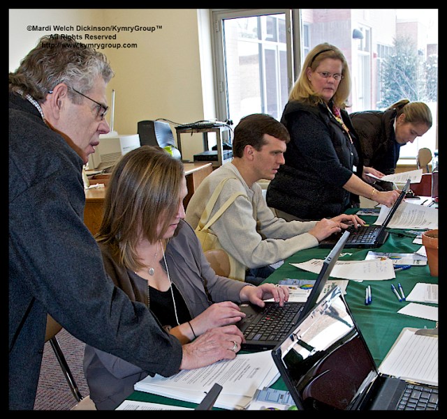 l. to r. Participant, Mark Wyman, Sharon Griffith of NYSERDA. Energize Bedford Action Room, Bedford 2020, Environmental Action Day, Fox Lane School, Bedford, New York. ©Mardi Welch Dickinson/Kymry GroupTM All Rights Reserved.
