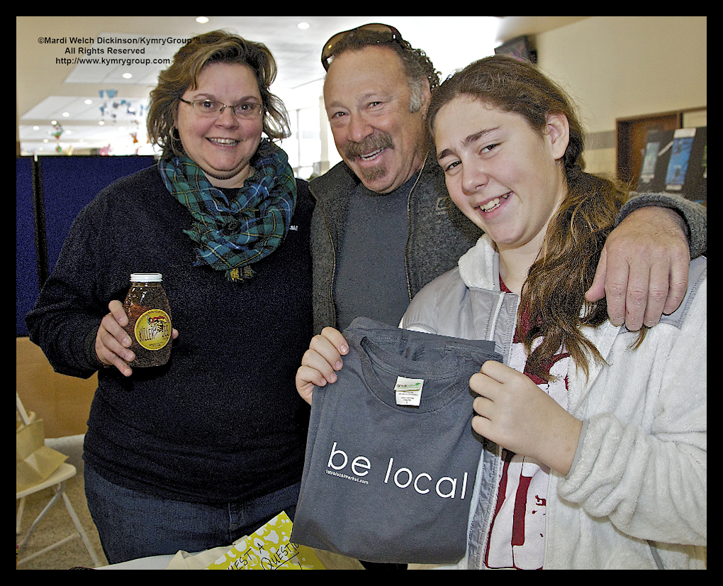 Expo, l. to r. Kathy Lett from TABLE, Tom Cohn w Daughter Ava Cohn, Killer Bee Honey. Bedford 2020, Environmental Action Day, Fox Lane High School, Bedford, New York. ©Mardi Welch Dickinson/Kymry GroupTM All Rights Reserved.