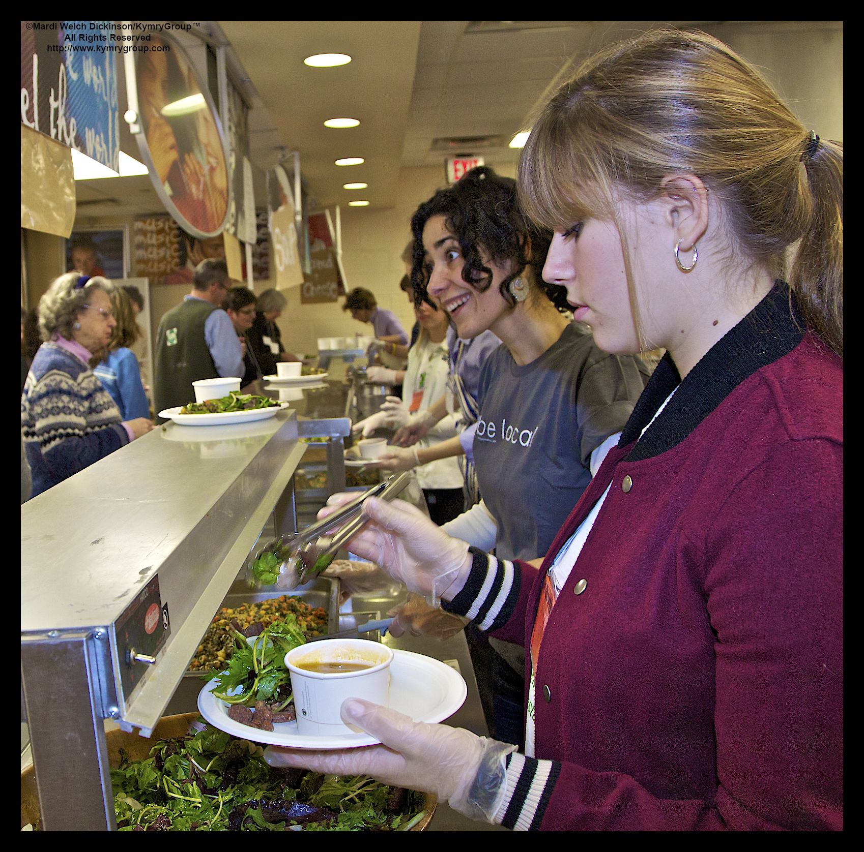 Lunch, l. to r. Lucia Maestro, General Manager,TABLE, FLHS student volunteer. Lunch provided by TABLE, Local Market, Bedford Hills, NY, Bedford 2020, Environmental Action Day, Fox Lane High School, Bedford, New York. ©Mardi Welch Dickinson/Kymry GroupTM All Rights Reserved.