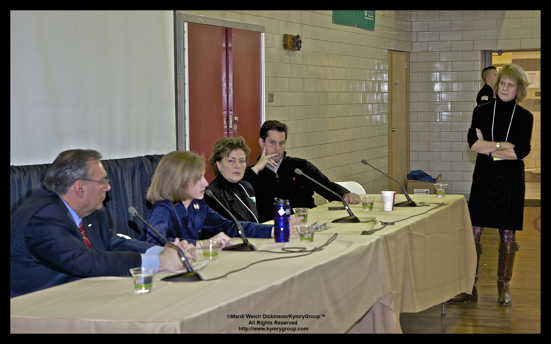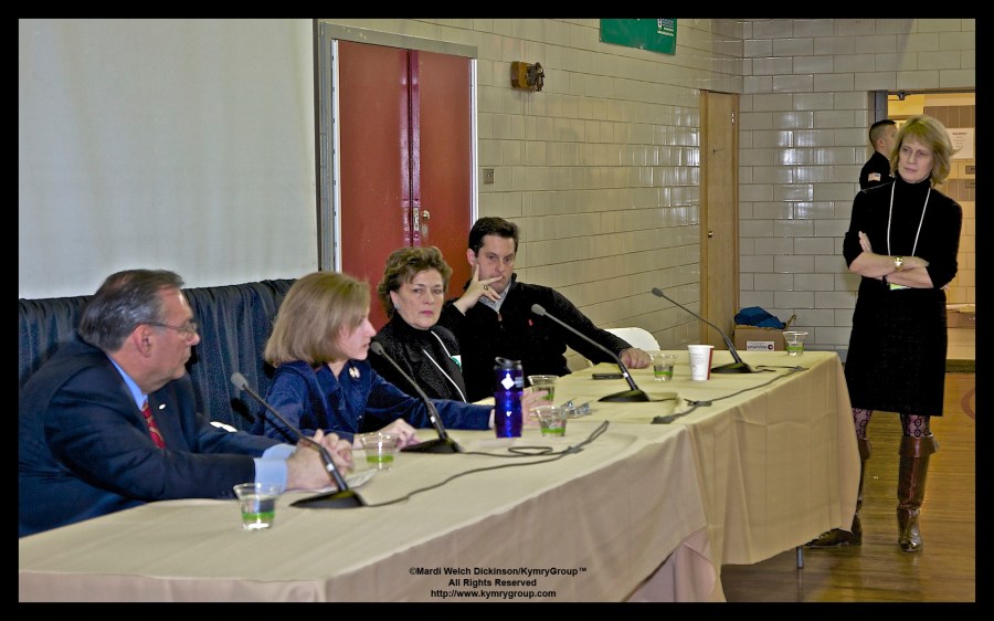 Green Goverment. l to r Robert J. Castelli, Assemblyman, Nan Hayworth, U.S. Representative for New York’s 19th District, Lee V. A. Roberts, Bedford Town Supervisor, Greg Ball, NY State Senator, Moderator standing, Marcia Bystryn, Exec. Director, NY League of Conservation Voters. Bedford 2020, Environmental Action Day, Fox Lane High School, Bedford, New York. ©Mardi Welch Dickinson/Kymry GroupTM All Rights Reserved.