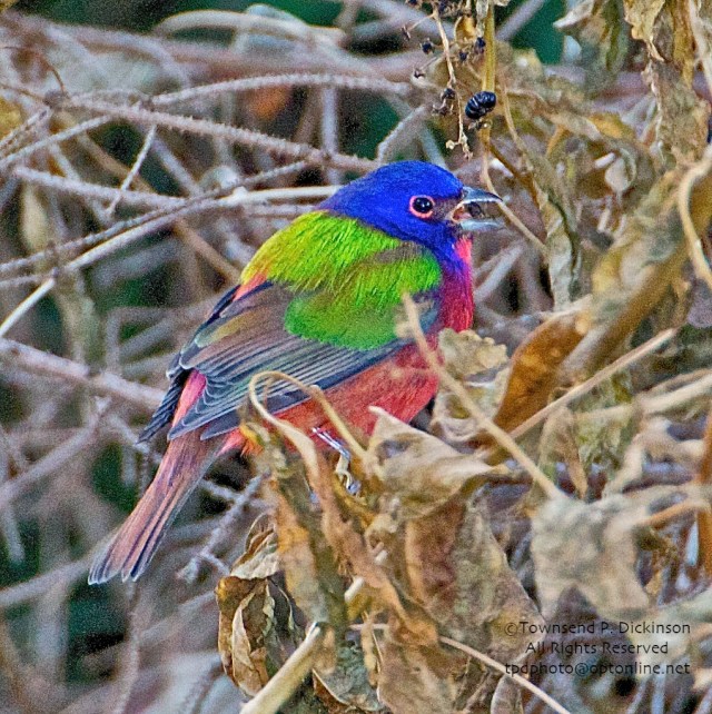Male Painted Bunting, Cove Island Wildlife Sanctuary, Cove Island Park, Stamford CT, Novemeber 25, 2011. ©Townsend P. Dickinson. All Rights Reserved. http://www.kymrygroup.com