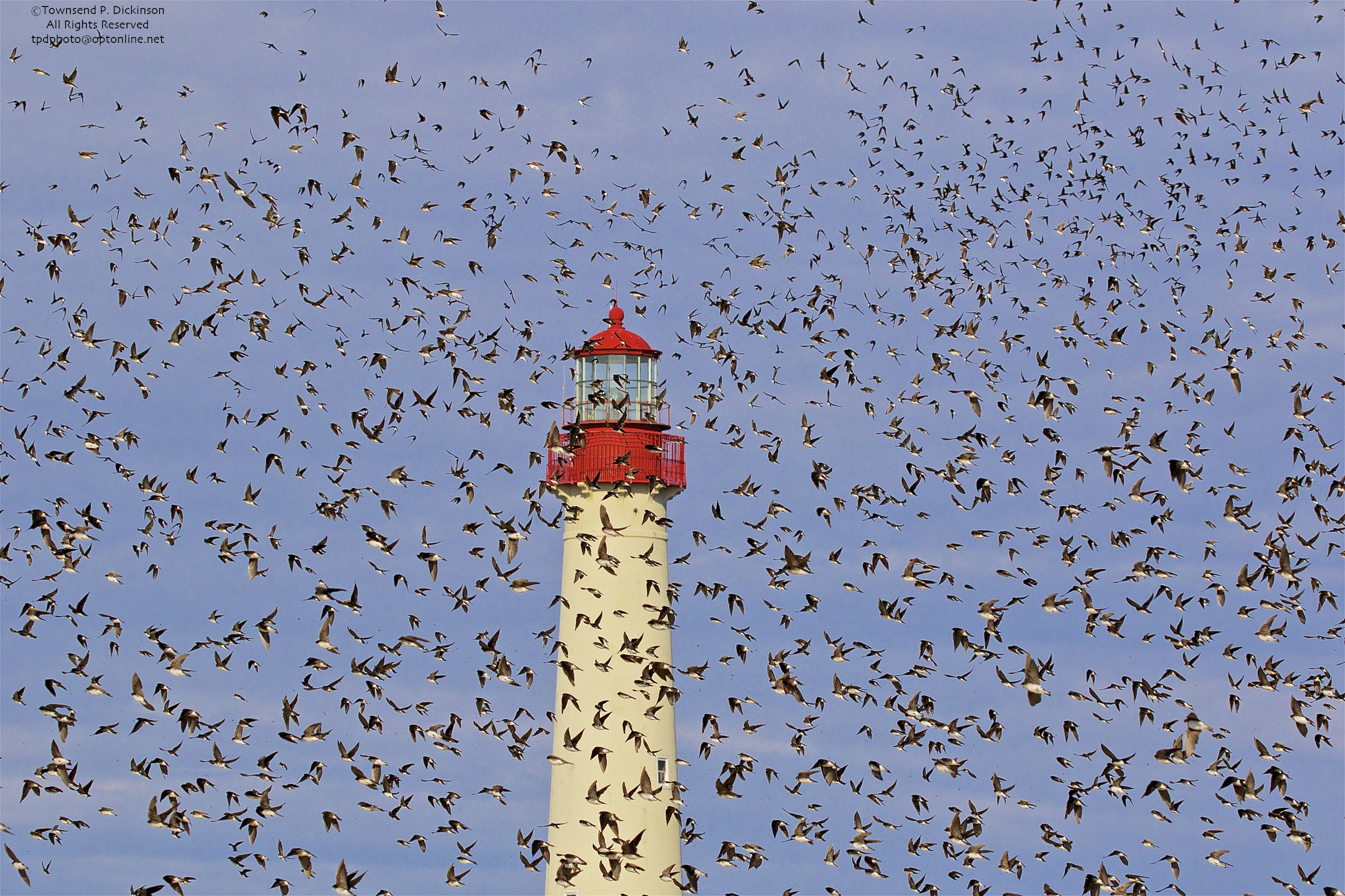 Tree Swallows, fall migrants foraging over Cape May Point State Park, Cape May, NJ. ©Townsend P. Dickinson.