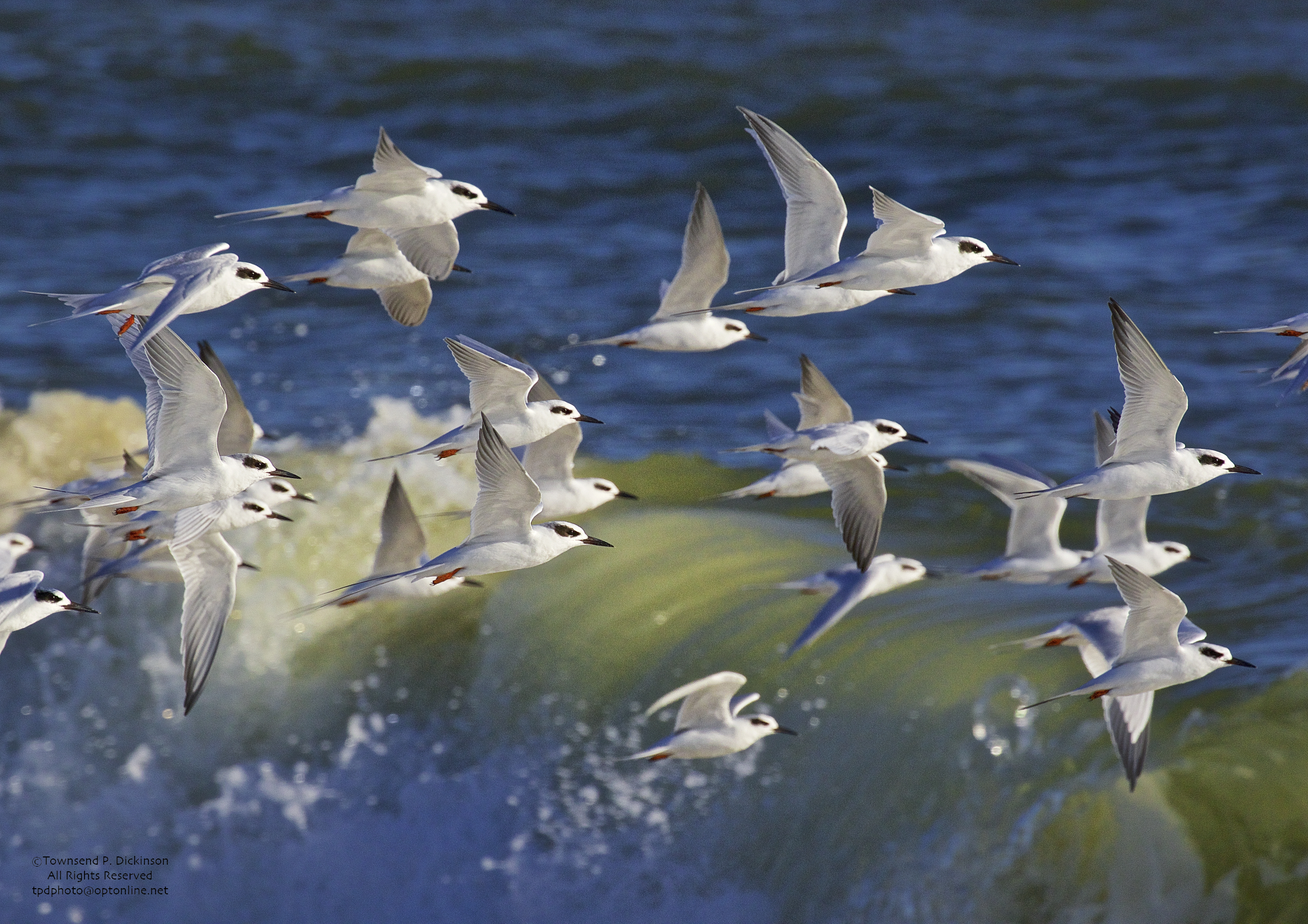 Forster’s Terns in flight over Atlantic Ocean, fall, Cape May, NJ. ©Townsend P. Dickinson