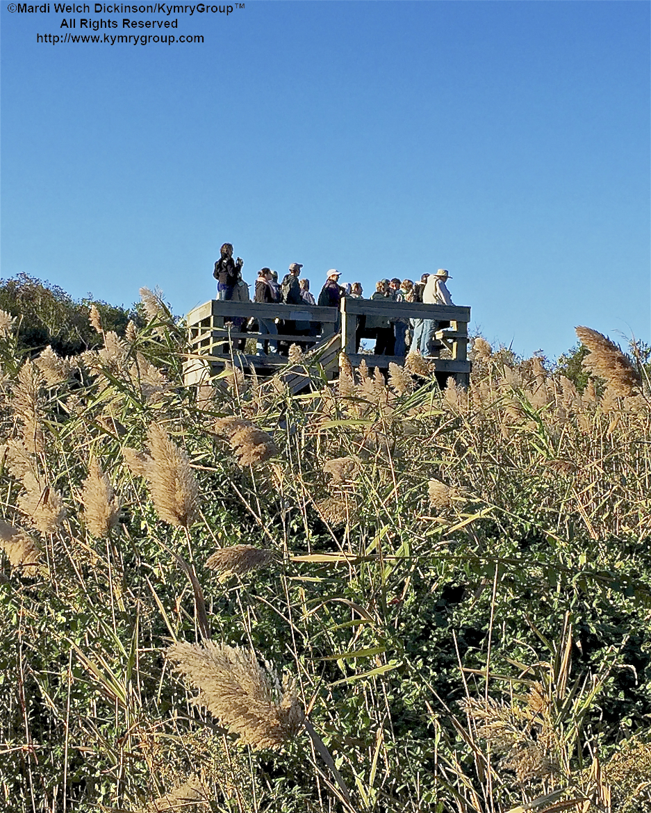 Cape May Morning Flight Platform & Dike at Higbee Beach birders gather as the sun peaks over the horizon that begins the spectacular fall songbird migration. Cape May Fall Birding Festival, Higbee Beach Wildlife Management Area, West Cape May, NJ. ©Mardi Welch Dickinson. All Rights Reserved.